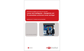 Bei den Lerntechnologien und -konzepten, die in den kommenden drei Jahren eine zentrale Rolle spielen werden, dominieren in diesem Jahr erstmals "Chatbots/Lernassistenten", denen 94 Prozent der Befragten eine künftig zentrale Rolle attestieren. Der Klassiker des digitalen Lernens, "Blended Learning", rangiert in diesem Jahr nur noch auf dem vierten Platz (83 Prozent, im Vorjahr noch 89 Prozent). Auch bei den Lernanwendungen, denen die Expertinnen und Experten in naher Zukunft großen kommerziellen Erfolg attestieren, liegen KI-basierte Technologien erst mals vorne. Spitzenreiter ist danach "Adaptive Learning" mit 71 Prozent (Vorjahr 56 Prozent). Auch „Chatbots/Lernassistenten“ (66 Prozent) werden als künftig wirtschaftlich sehr erfolgreich eingeschätzt.